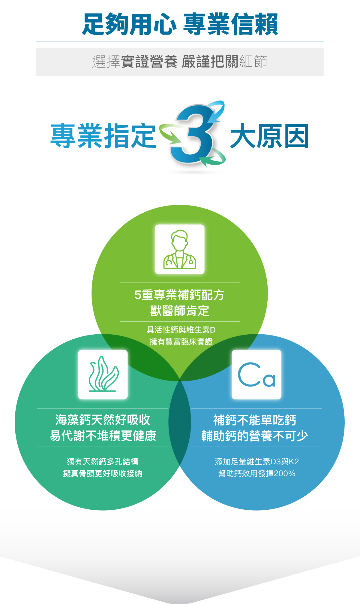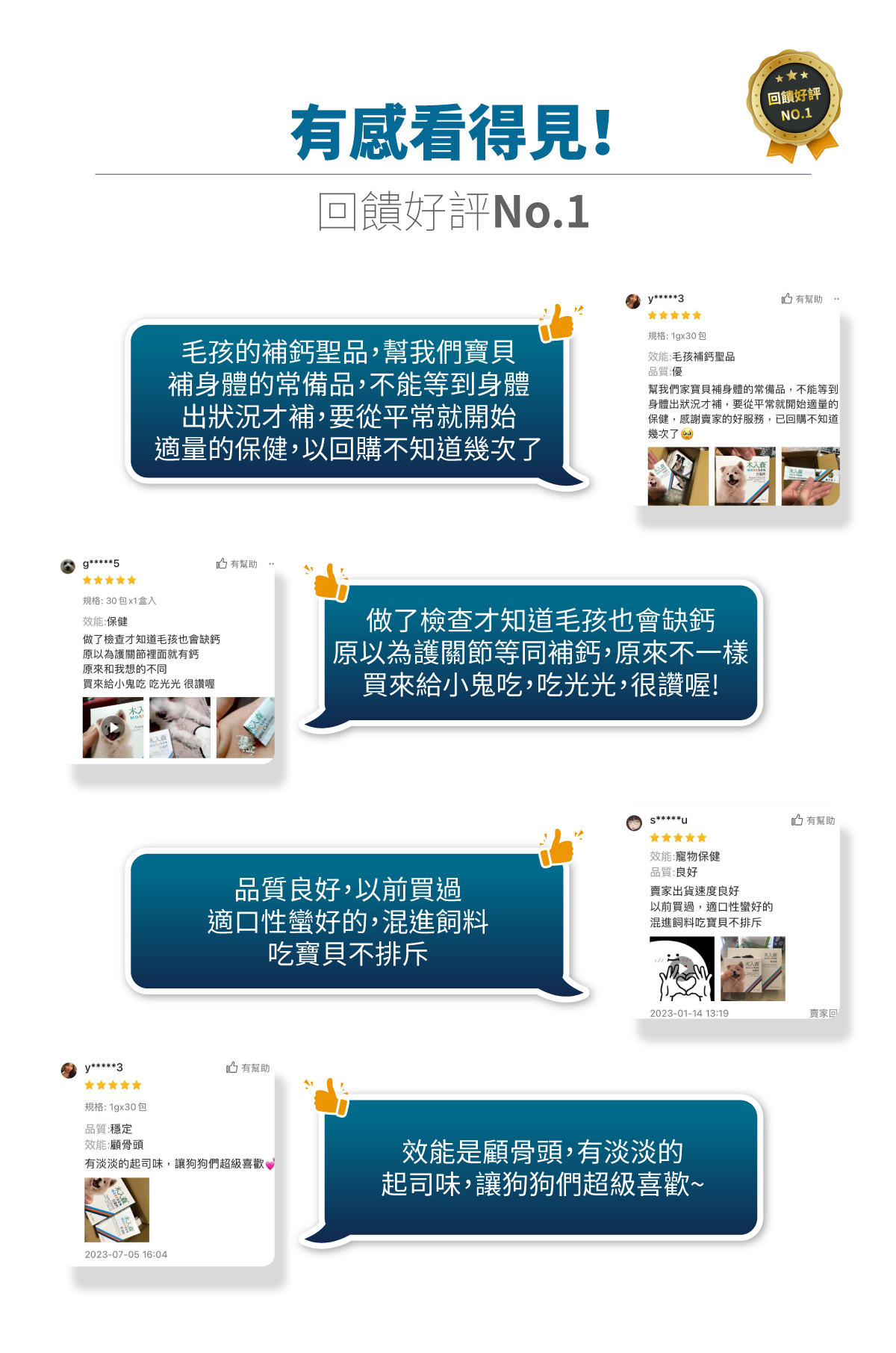 可做為「幼犬老狗」、「懷孕哺乳犬」、吃「飼料罐罐」或「鮮食生食」狗狗缺鈣的重要營養補充。