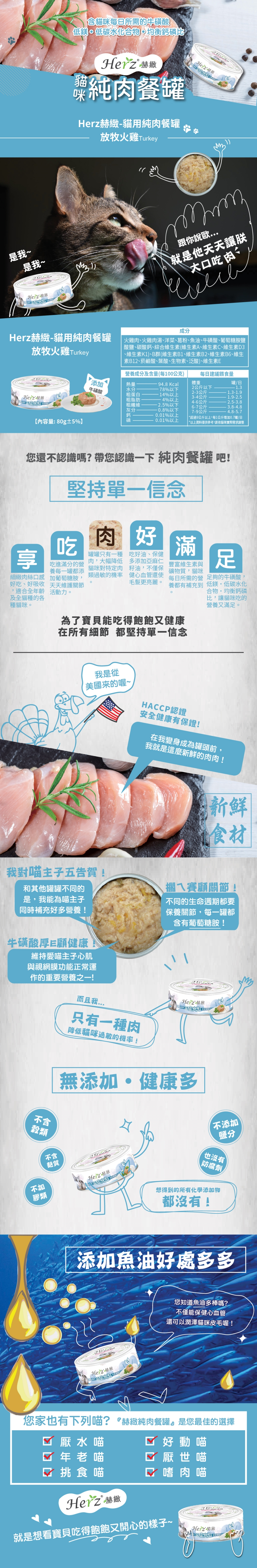 【毛小孩寵物生活館】Herz赫緻貓用純肉餐罐-放牧火雞80g 貓罐頭