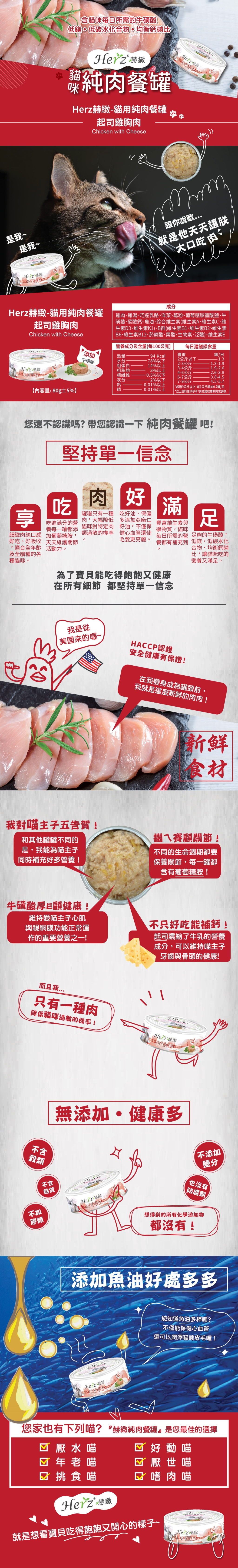 【毛小孩寵物生活館】Herz赫緻貓用純肉餐罐-起司雞胸肉80g 貓罐頭