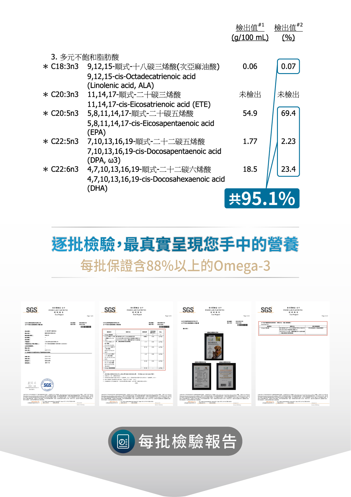 木入森高 EPA 寵物魚油,自主逐批檢驗 Omega-3 含量,確保 Omega-3 含量達 88-95%,一粒就能補充足量的 Omega-3、EPA及DHA。每粒膠囊含有總共 400mg 的 EPA 及 DHA,濃度越高,每次補充的有效成分就越多,營養吸收更集中,效果更好!