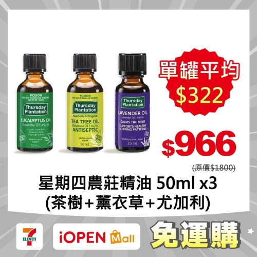產品名稱 : 澳洲星期四農莊100% 尤加利/薰衣草/茶樹精油 50ml