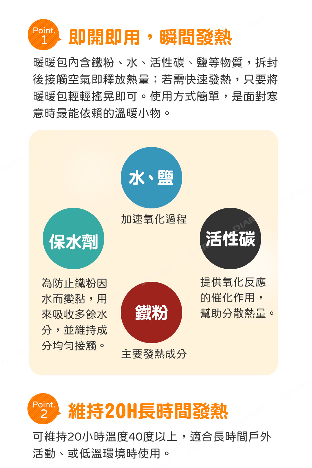 ●發熱時間可維持20小時溫度40度以上