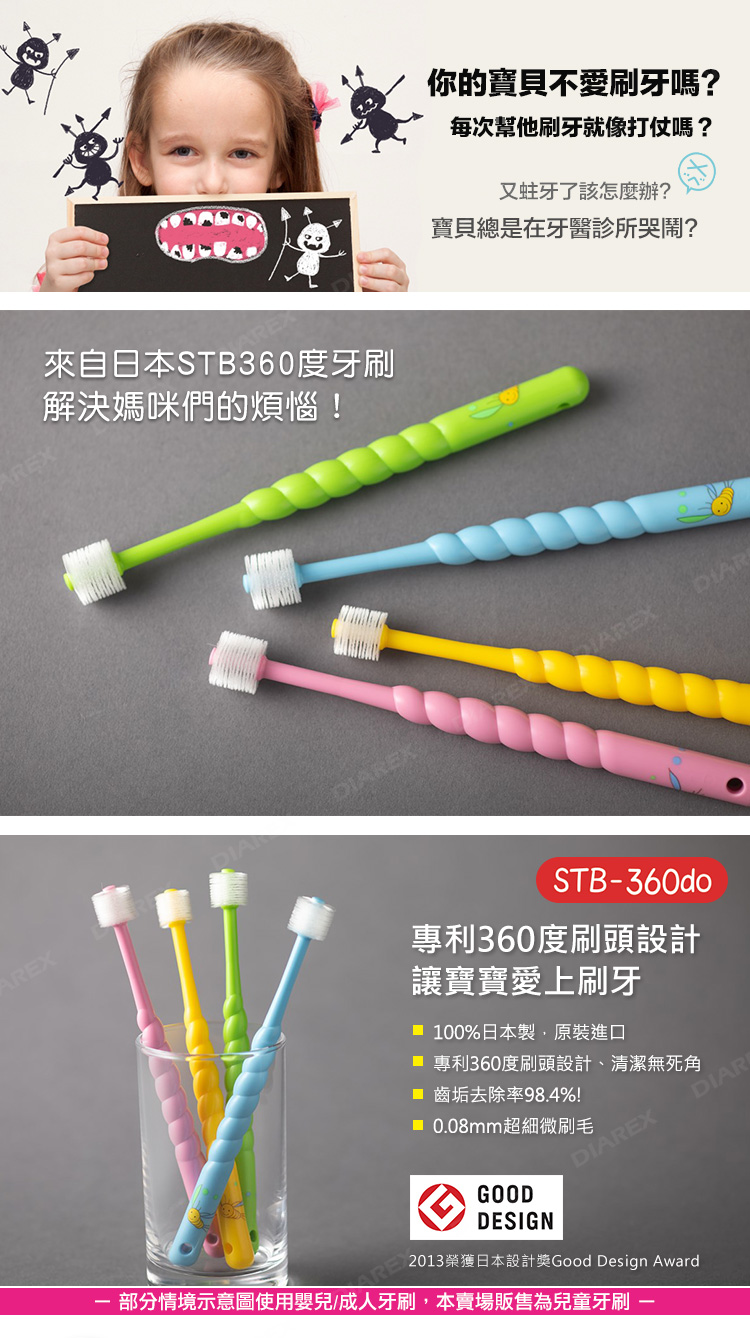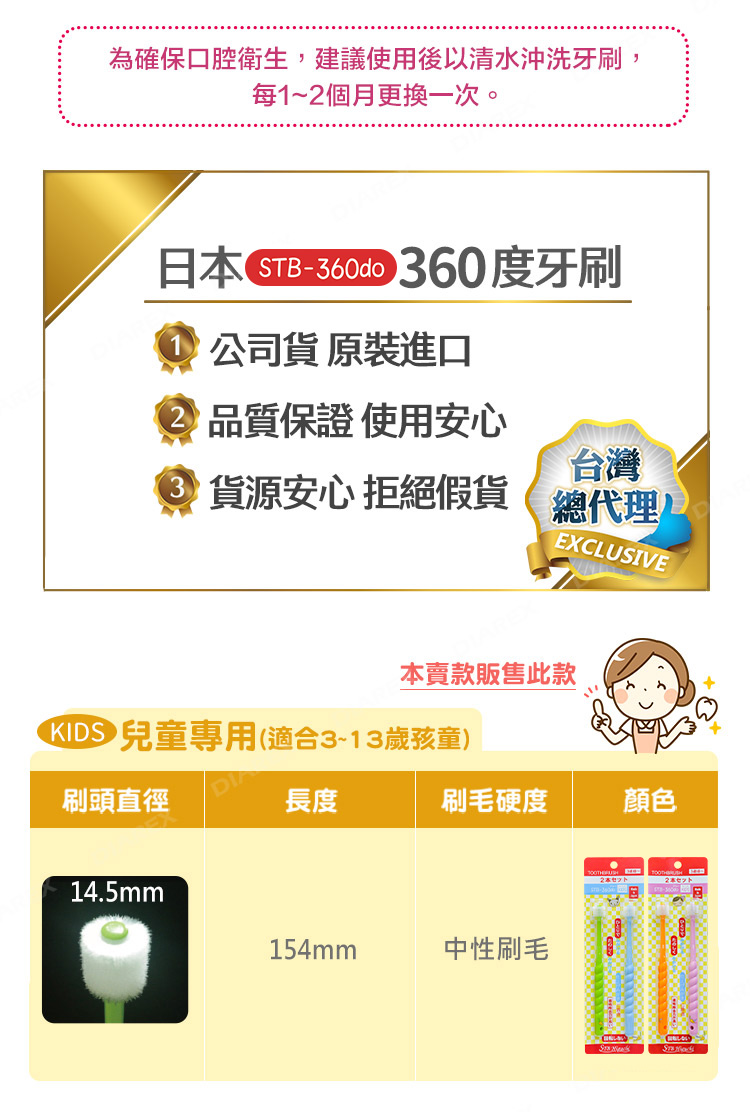 品名:STB 360度牙刷 兒童用2支(適合3~13歲孩童)