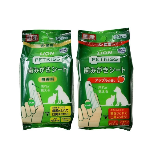 ● 日本LION PETKISS寵物系列 犬貓通用齒垢清潔布巾30入