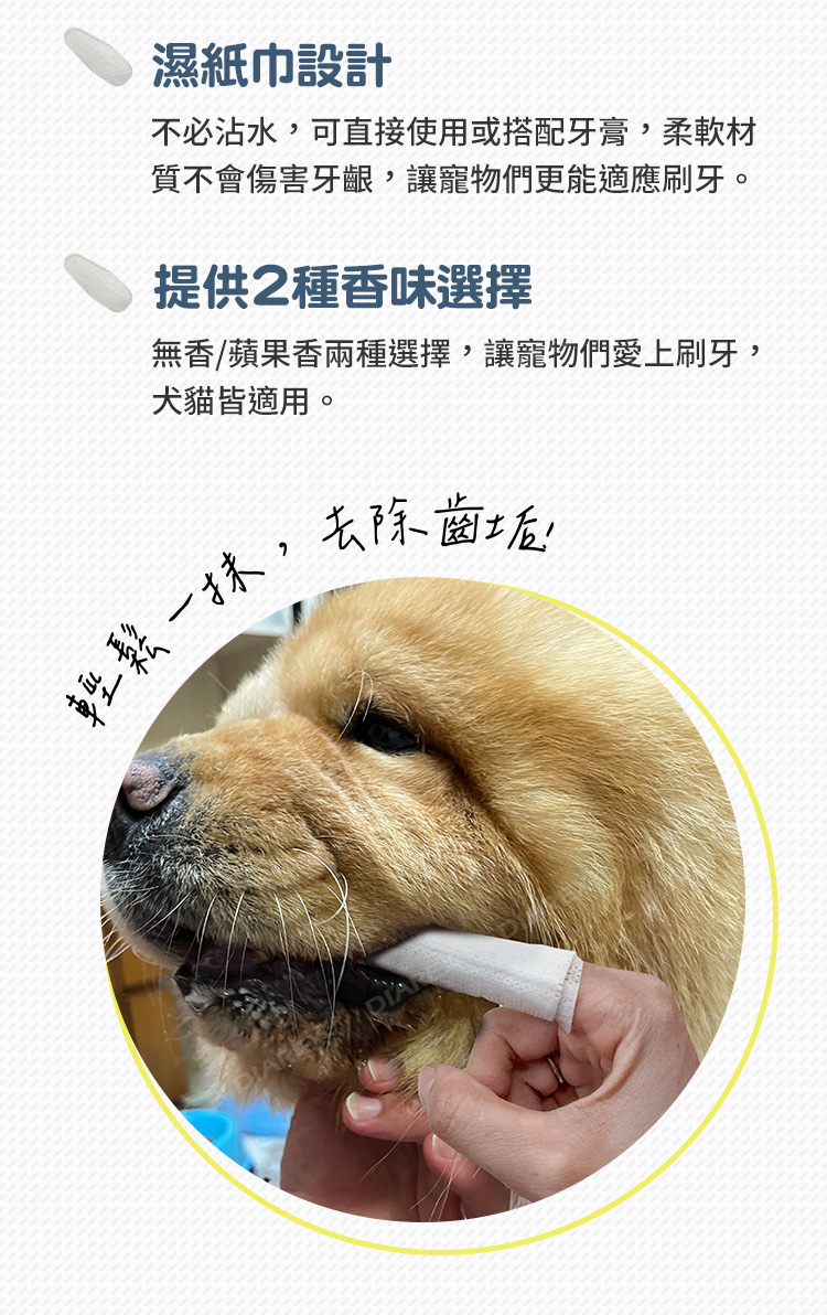 ●濕巾設計免沾水,可直接使用或搭配牙膏