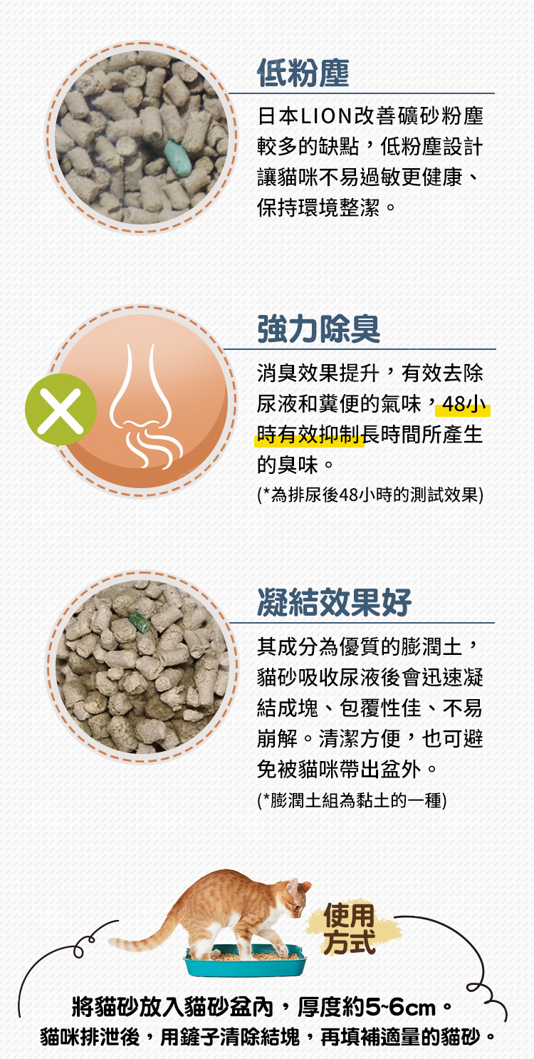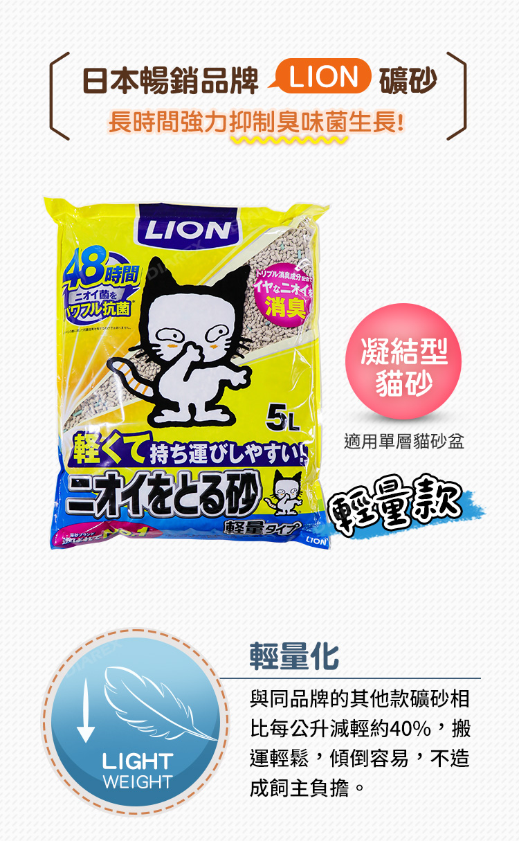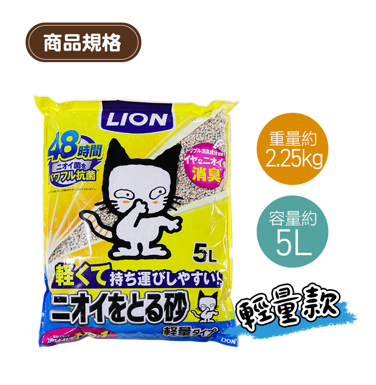 ● 日本LION 除臭貓砂/礦砂-輕量款5L