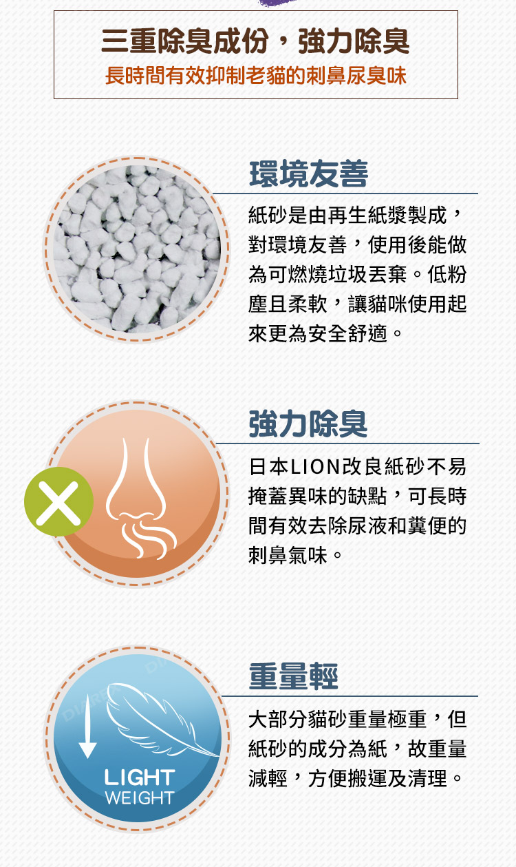 ● 日本LION 除臭貓砂/紙砂 強效除臭款(7歲以上適用) 7L