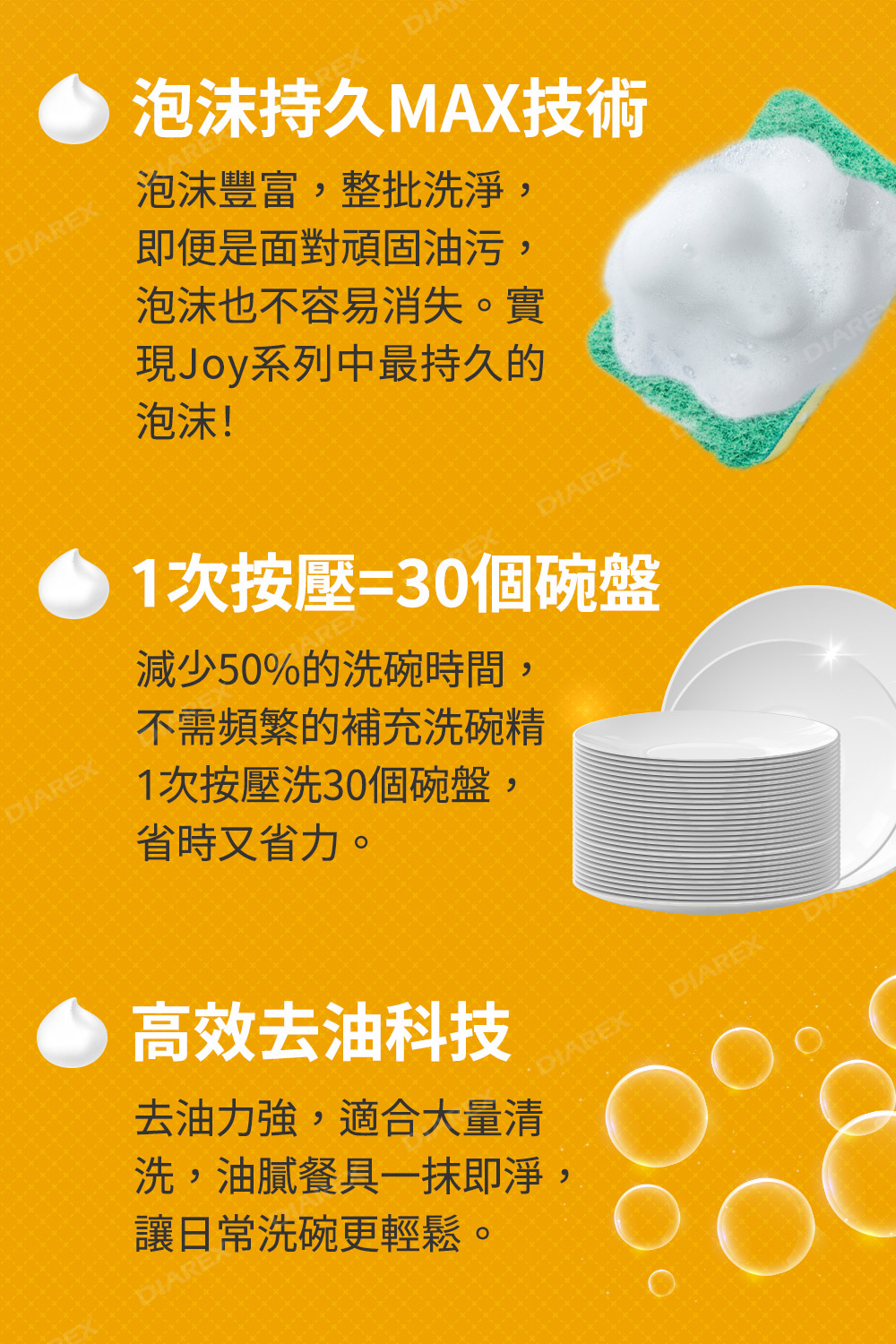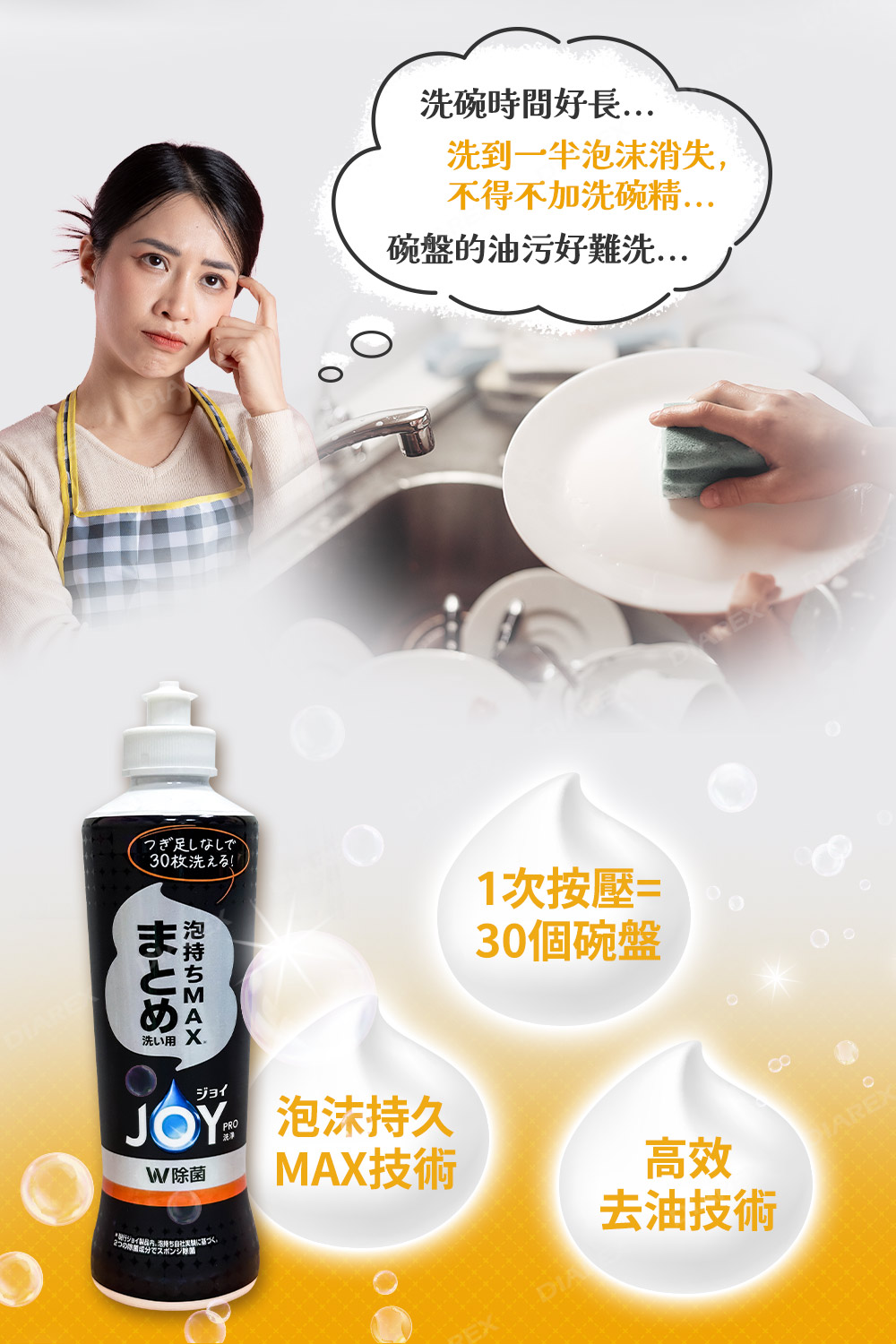 ●泡沫持久MAX 技術,適合一次洗大量餐具