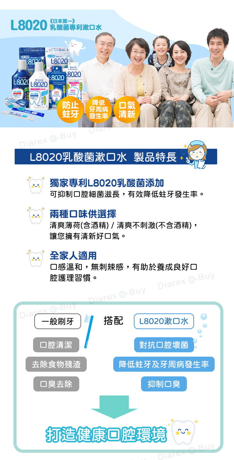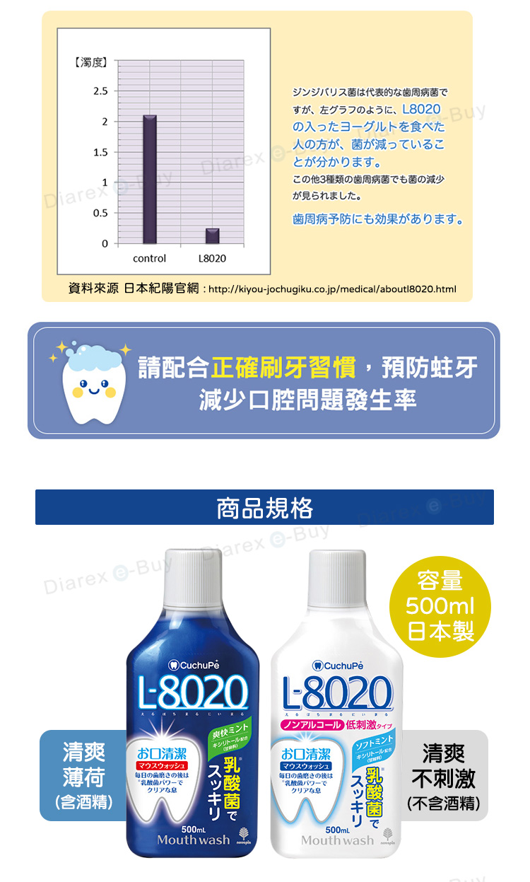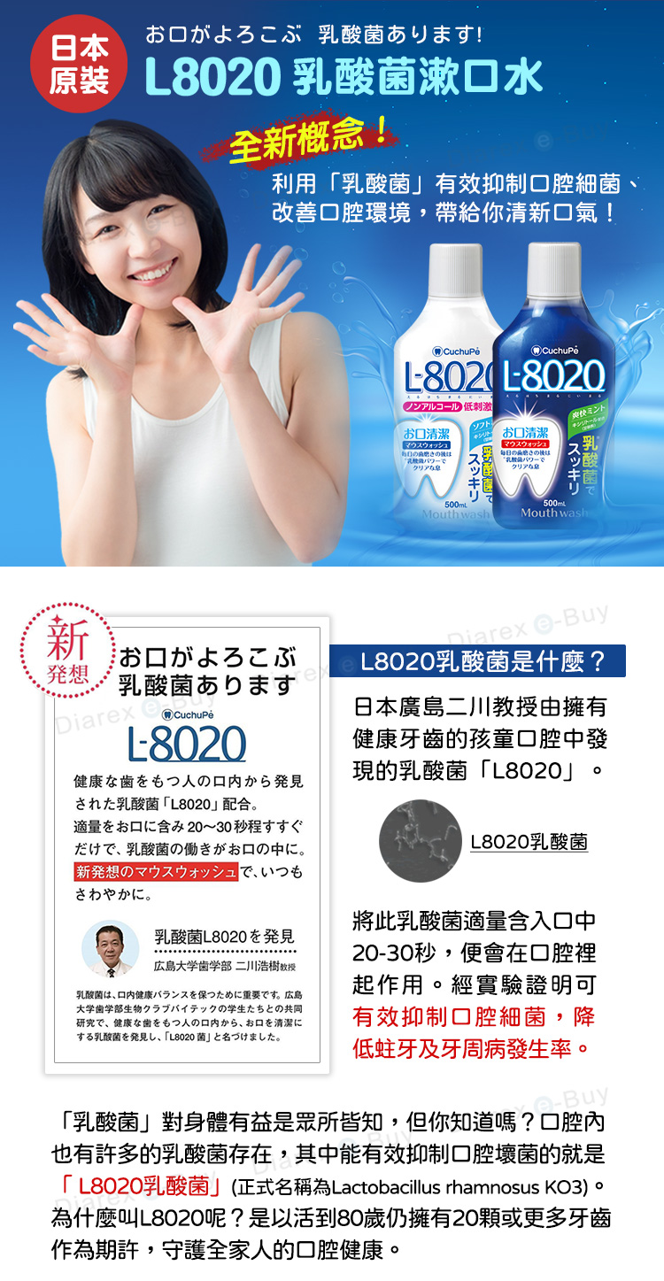 品名:L-8020乳酸菌漱口水 500ml 清新薄荷(含酒精)/無酒精