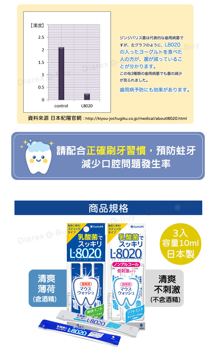 品名:日本製L8020乳酸菌漱口水隨身包 (清新薄荷/溫和型)