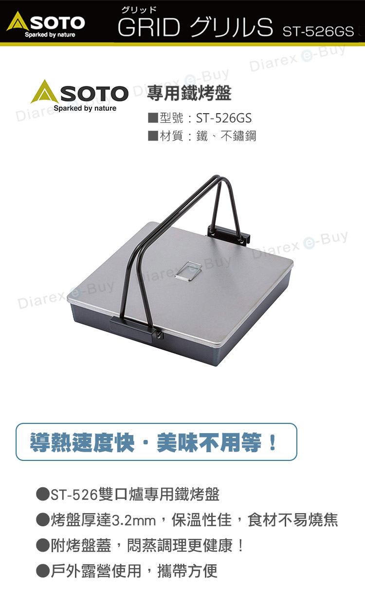 【品名】SOTO雙口爐專用鐵烤盤ST-526GS