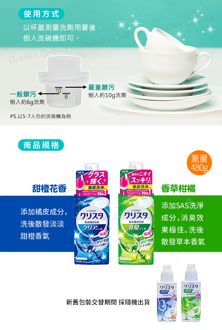 品名:LION洗碗機專用凝膠洗潔精480g