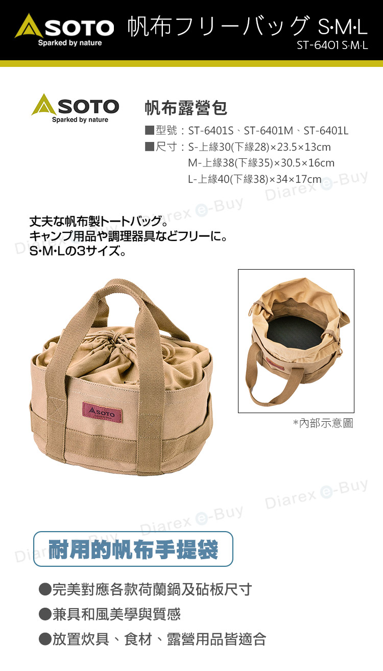 品名:SOTO帆布露營包ST-6401S、ST-6401M、ST-6401L