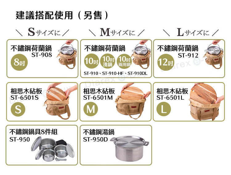 ●完美對應各荷蘭鍋及砧板尺寸