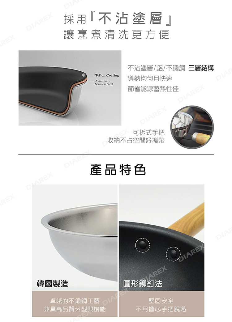 材質:SUS430不鏽鋼+鋁(AL)+不沾塗層(Teflon)