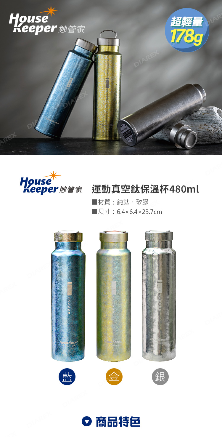 品名:妙管家 運動真空鈦保溫杯480ml