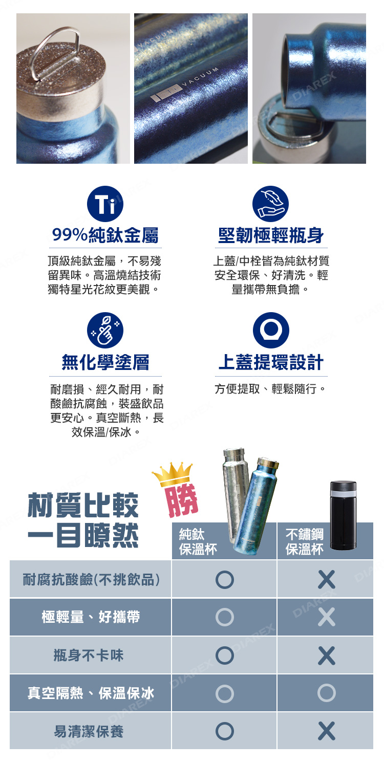 ●頂級純鈦金屬,不易殘留異味