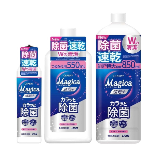 品名:Charmy Magica速乾+ 抗菌洗碗精(白玫瑰香)