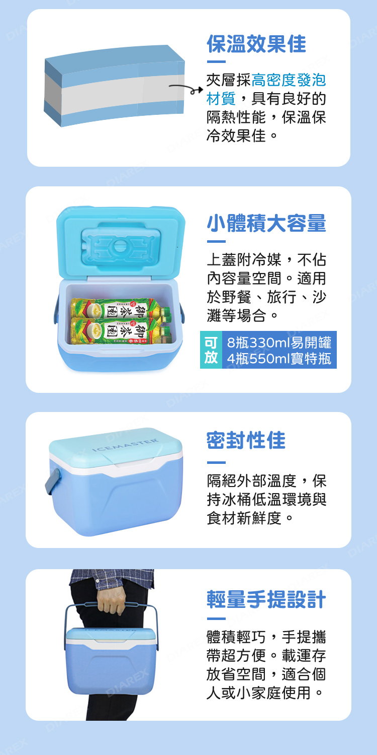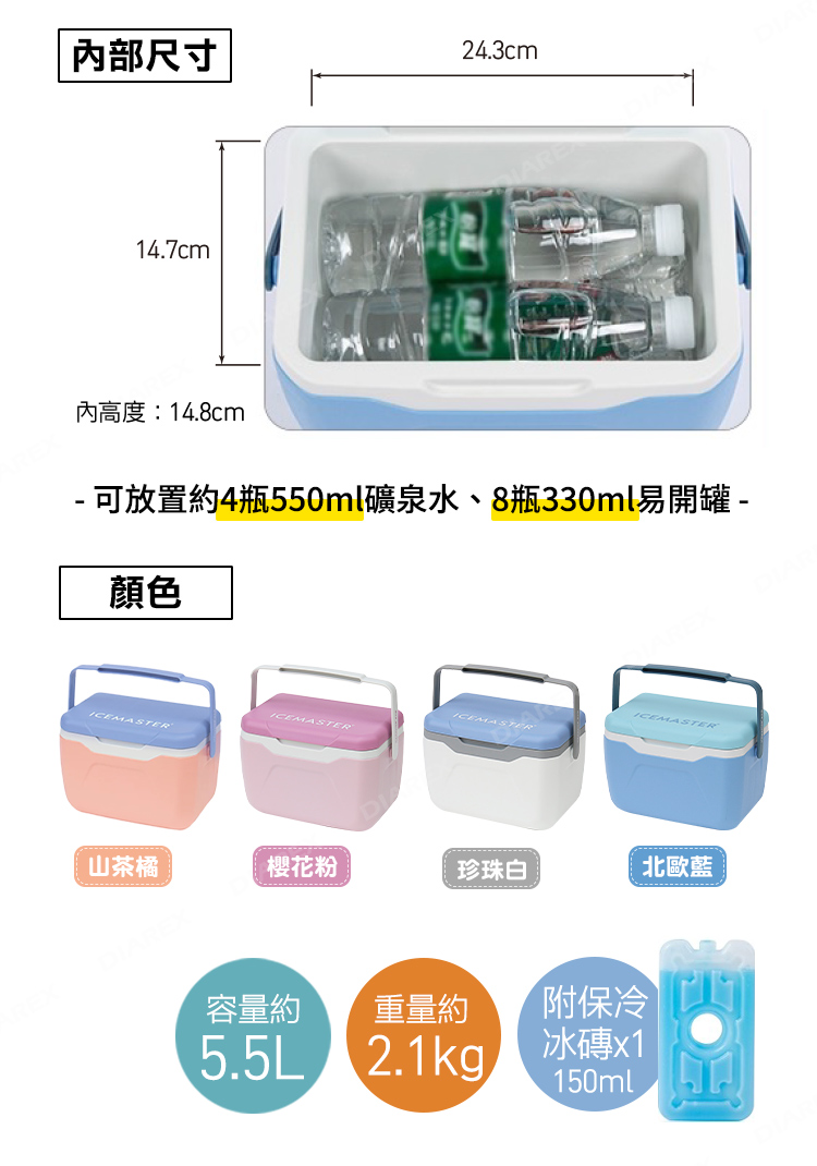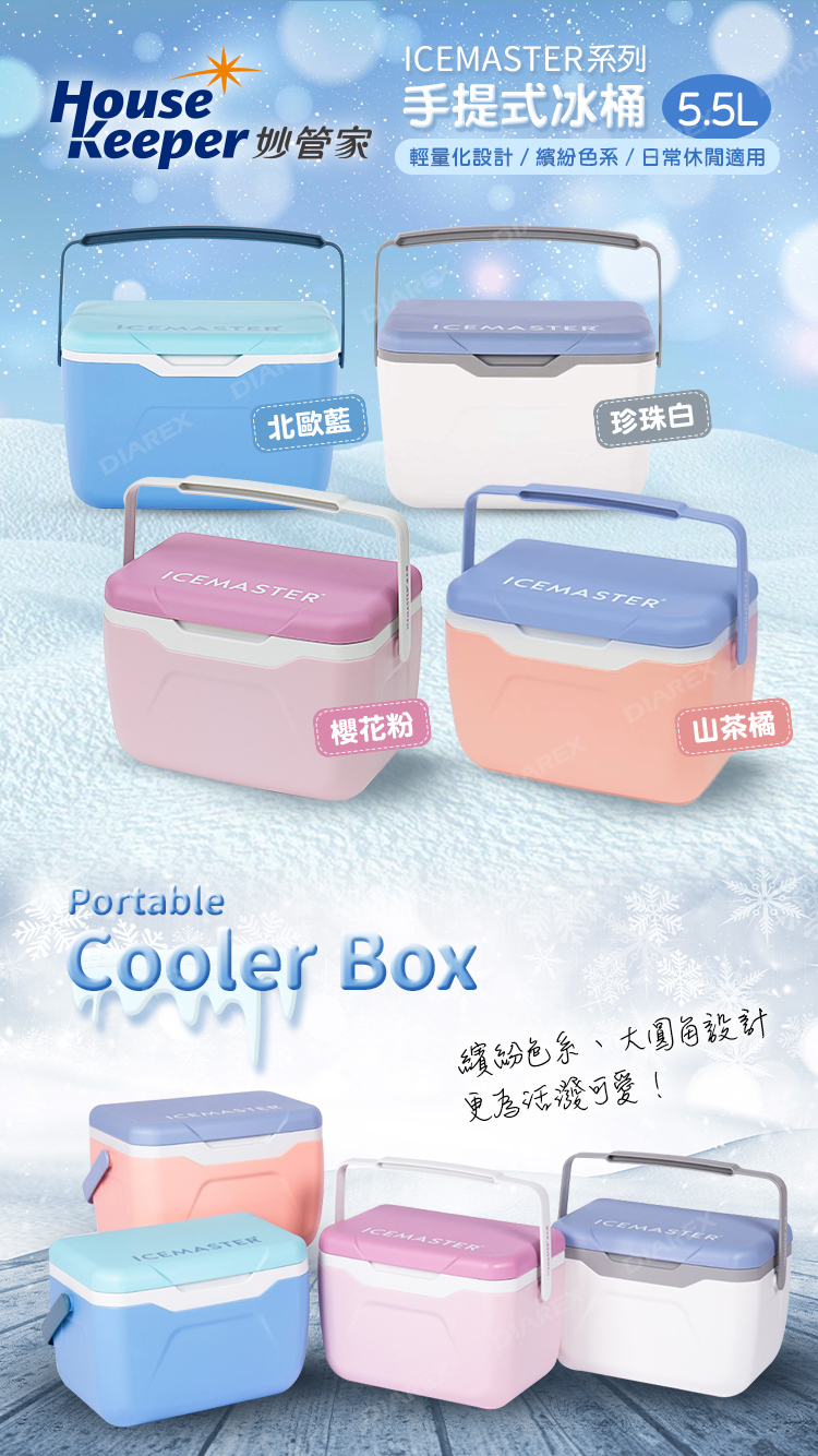妙管家 ICEMASTER手提式保冰桶5.5L(山茶橘/珍珠白/北歐藍/櫻花粉) 附冰磚 戶外保冷箱 露營野餐烤肉冰桶