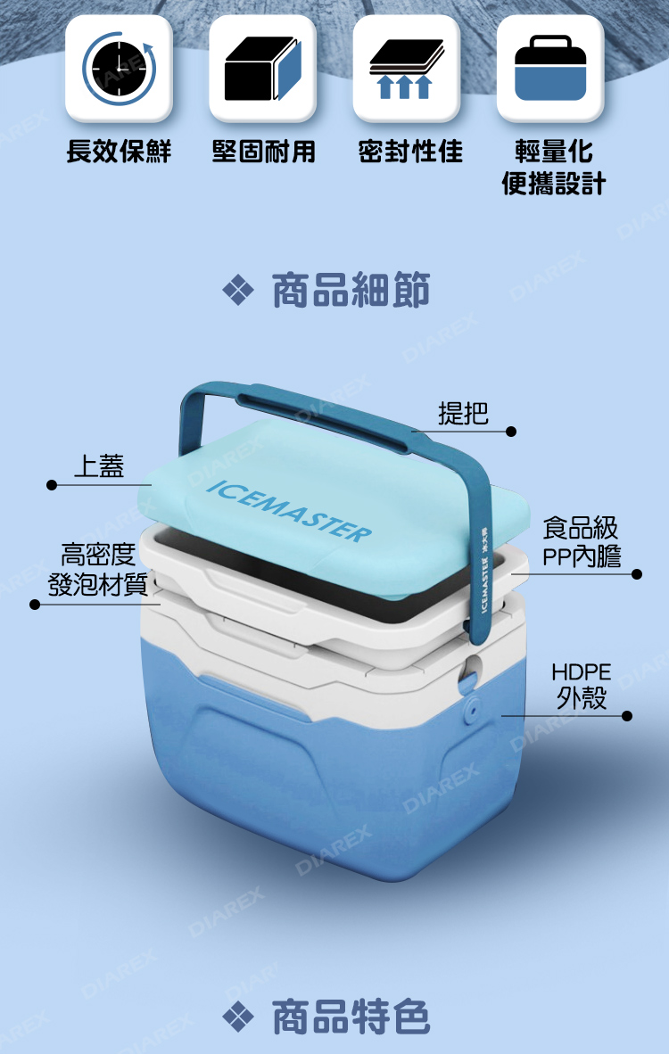 冰桶材質:高密度聚乙烯(HDPE)+聚丙烯(PP)+夾層PU發泡
