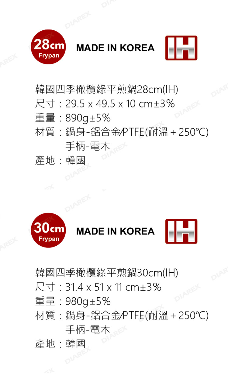 材質:鍋身-鋁合金/PTFE(耐溫+250℃)、手柄-電木