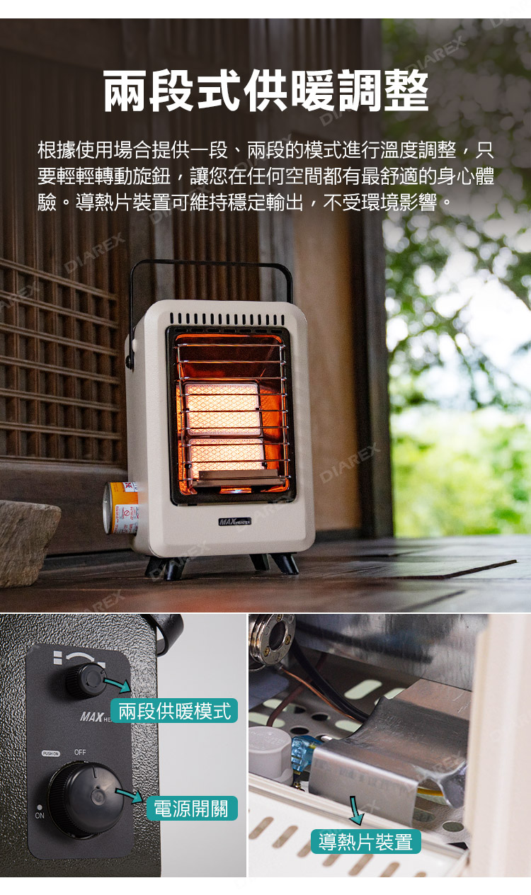 ●兩段式供暖調整,導熱片裝置維持穩定輸出