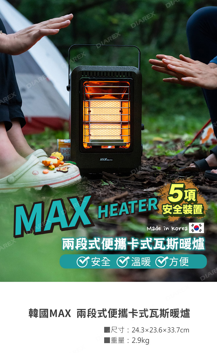 ● 韓國MAX 兩段式便攜卡式瓦斯暖爐(優雅白/午夜綠) MGH-300A