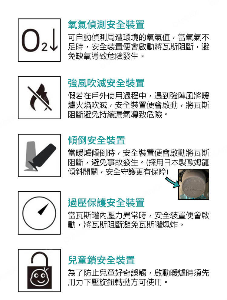 ●5大安全裝置,讓您在任何場合皆可安心使用