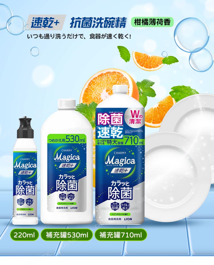 ● 日本LION 速乾+ 抗菌系列洗碗精 小資4入組