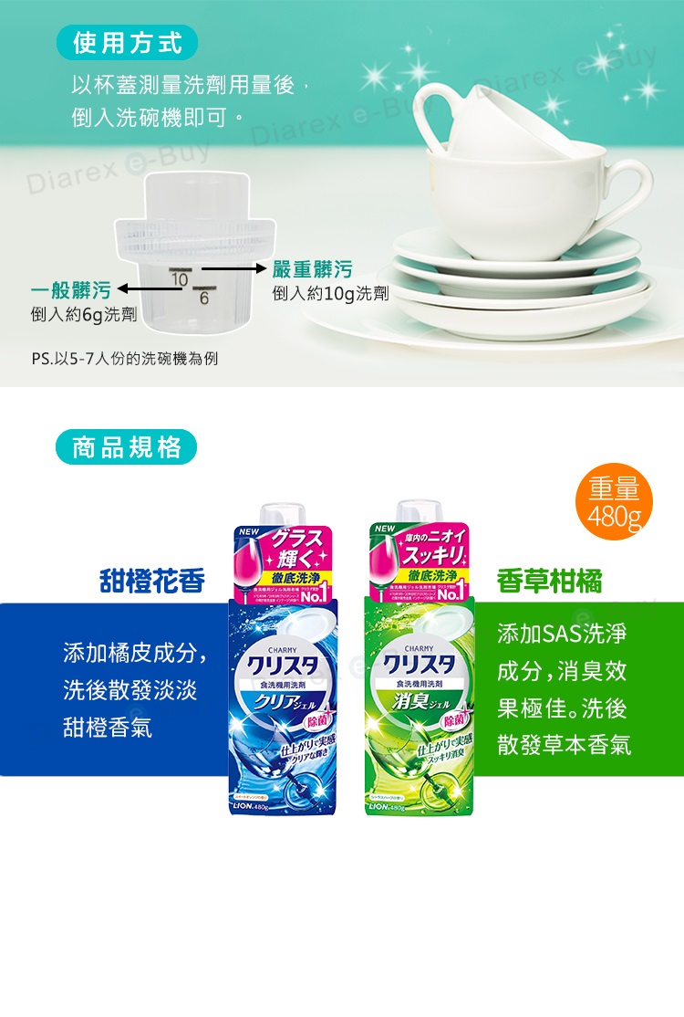 品名:LION洗碗機專用凝膠洗潔精480g 二罐入