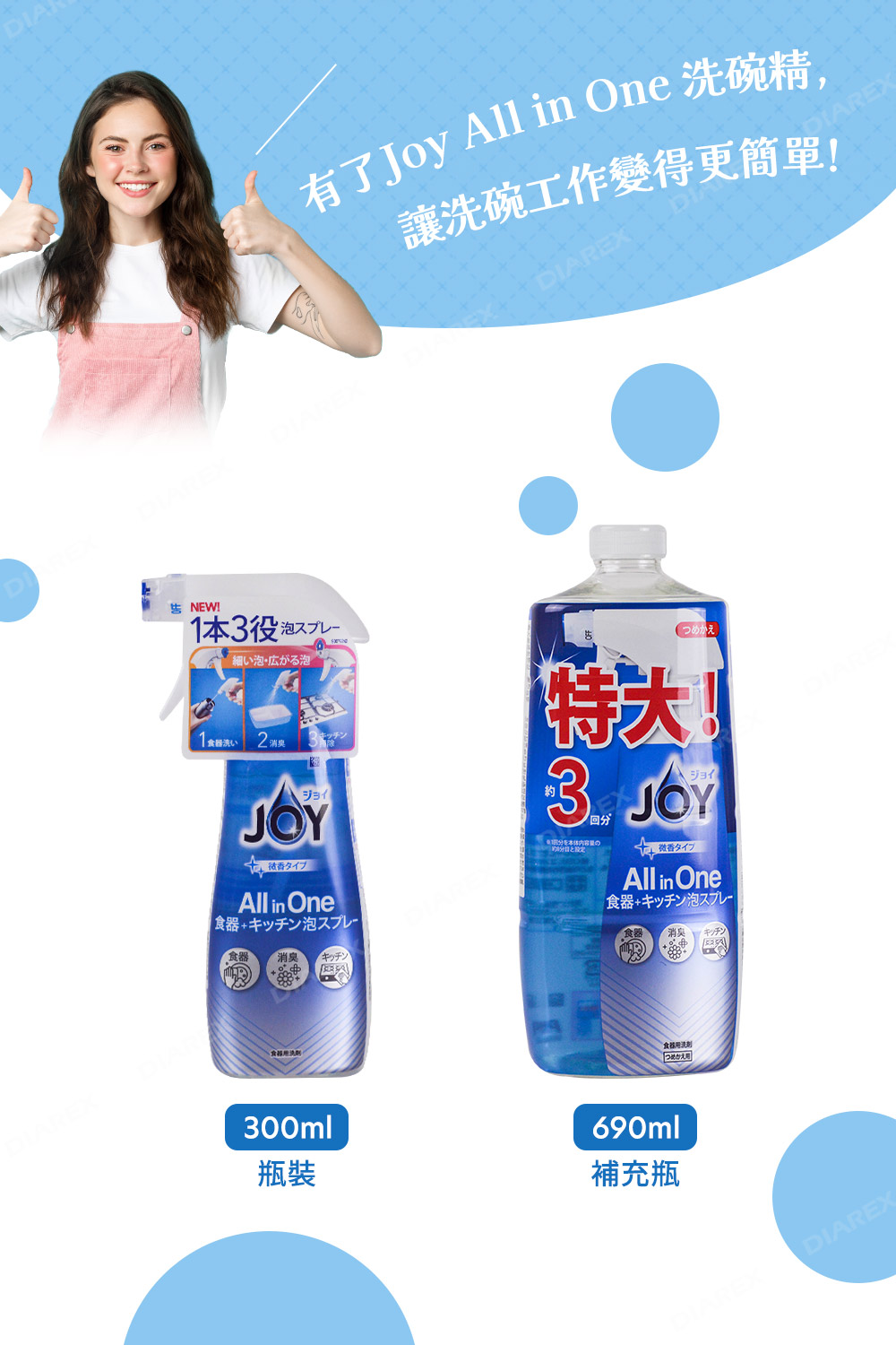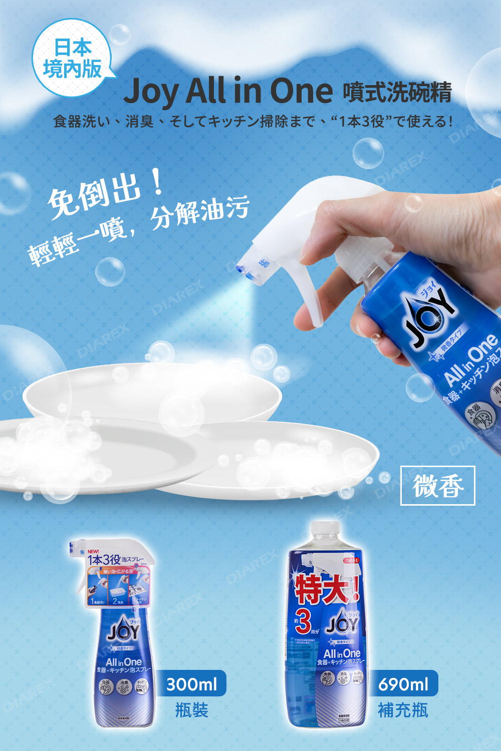 品名:日本P&G JOY ALL IN ONE系列洗碗精-微香噴式(300ml/690ml)