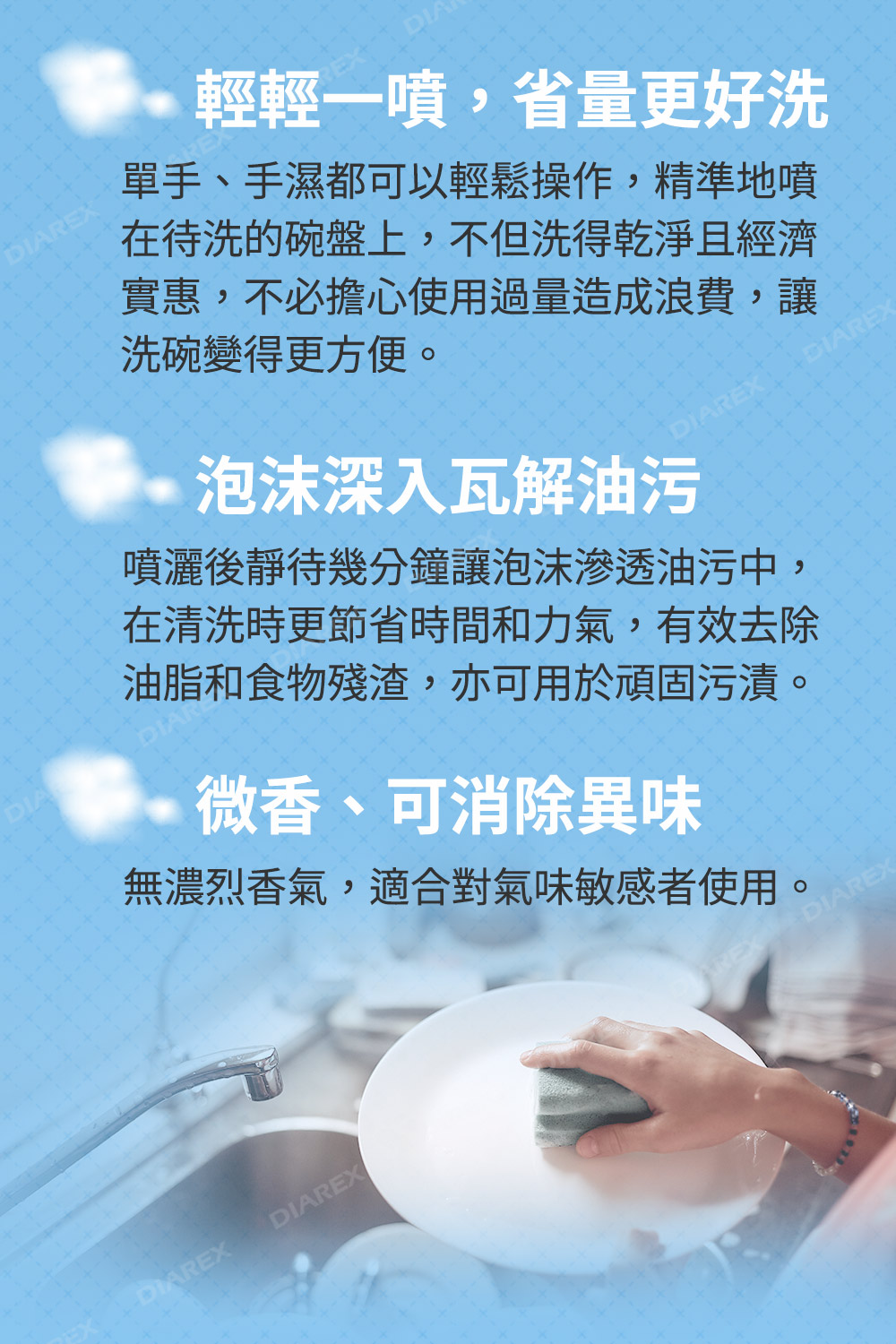 ●泡沫深入瓦解油污,省力清洗更乾淨