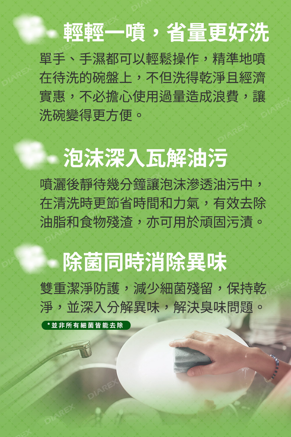 ●泡沫深入瓦解油污,省力清洗更乾淨