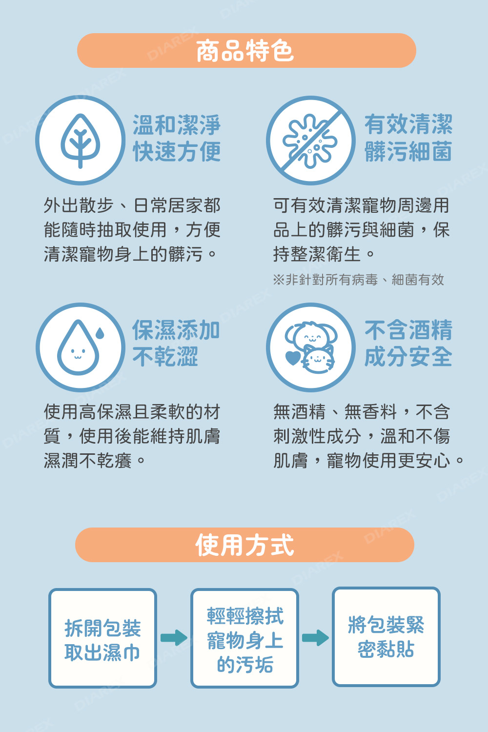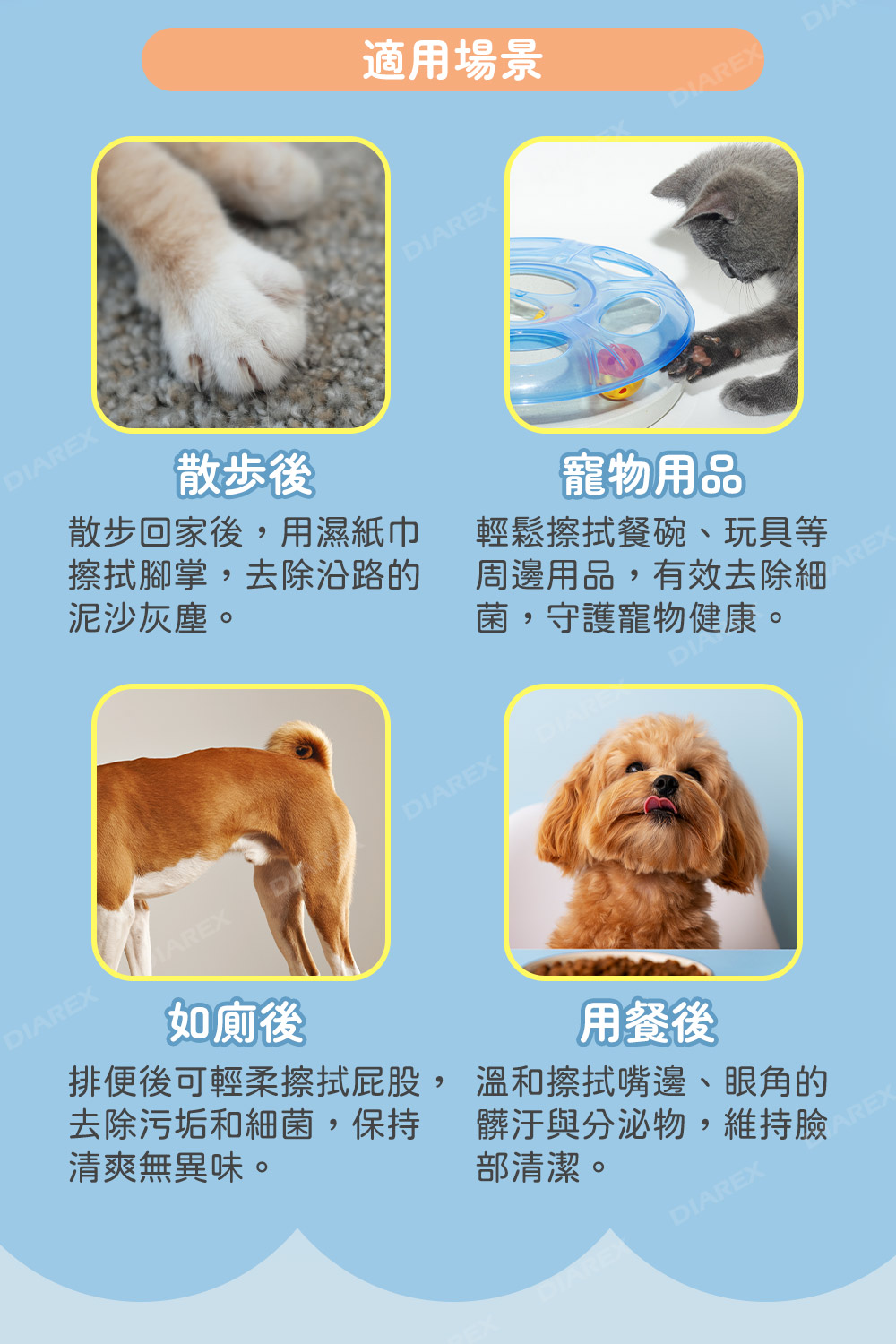 ●清潔寵物身體、周邊用品,去除污垢與細菌