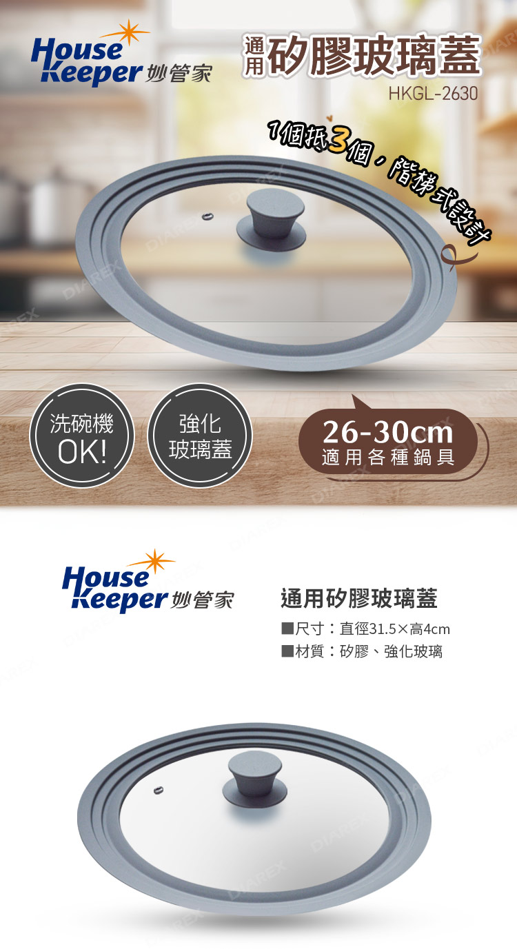 【品名】妙管家 通用矽膠玻璃蓋(26-30cm) HKGL-2630