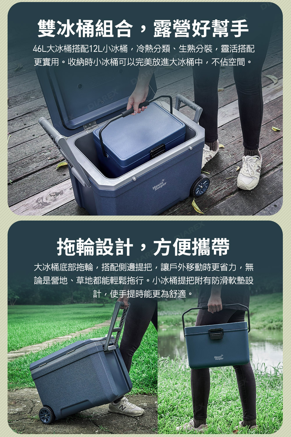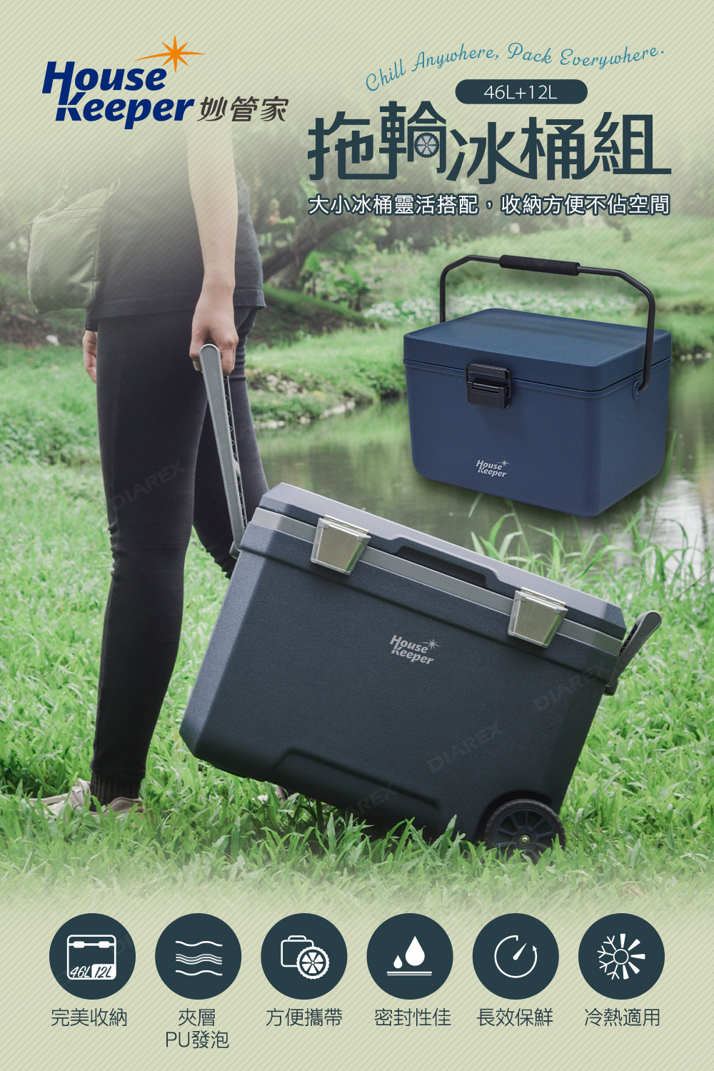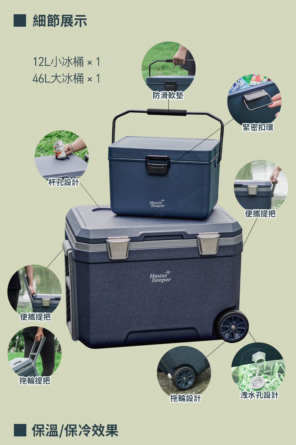 【品名】妙管家 拖輪式冰桶組46L+12L(深藍色) HKI-4612DBU