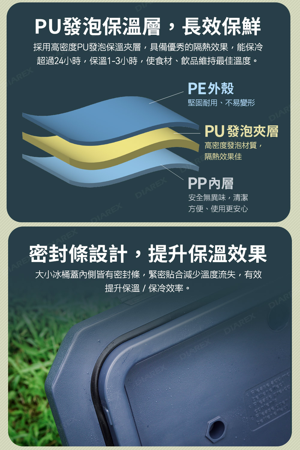 【材質】內層-聚丙烯(PP)+外層-高密度聚乙烯(HDPE)+夾層-PU發泡