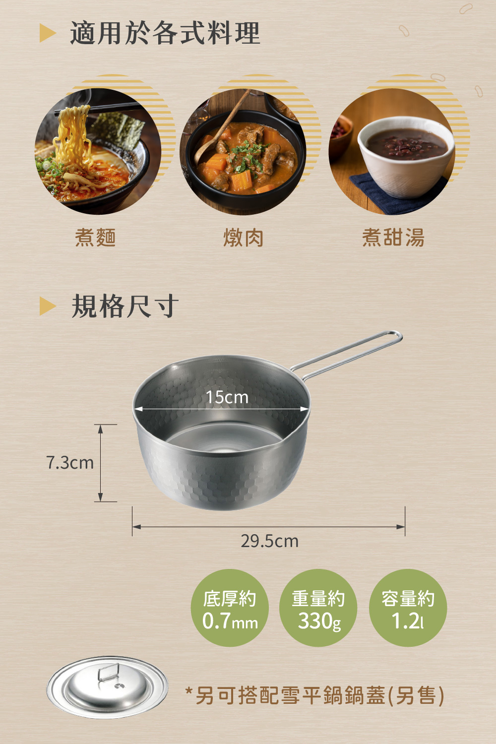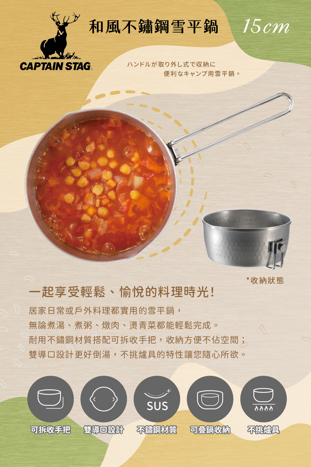 【品名】日本鹿牌 不鏽鋼雪平鍋15cm UH-4209