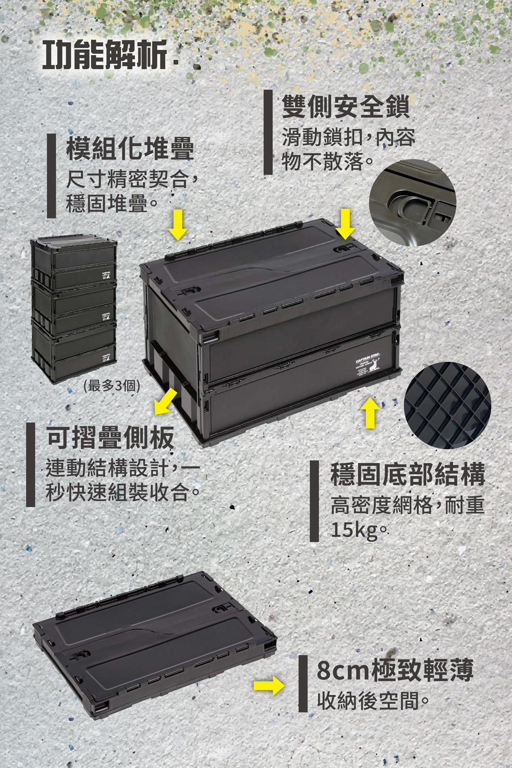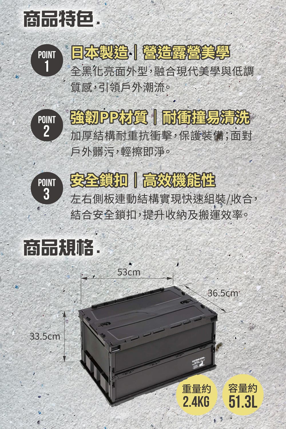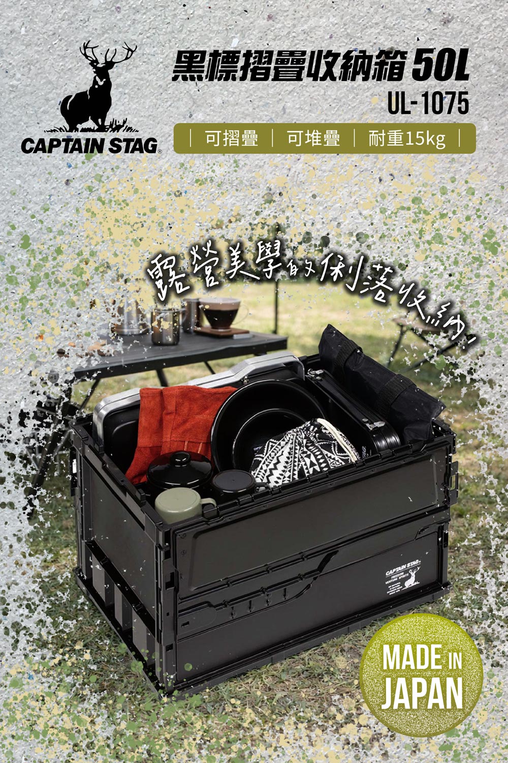 【品名】日本鹿牌CAPTAIN STAG 黑標摺疊收納箱 50L UL-1075