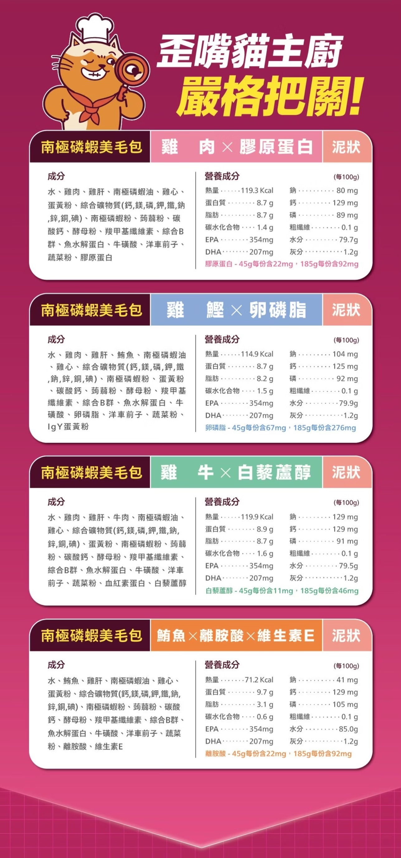 肉球世界|南極磷蝦美毛包 養出閃亮毛髮主食包 全齡貓 45g/185g