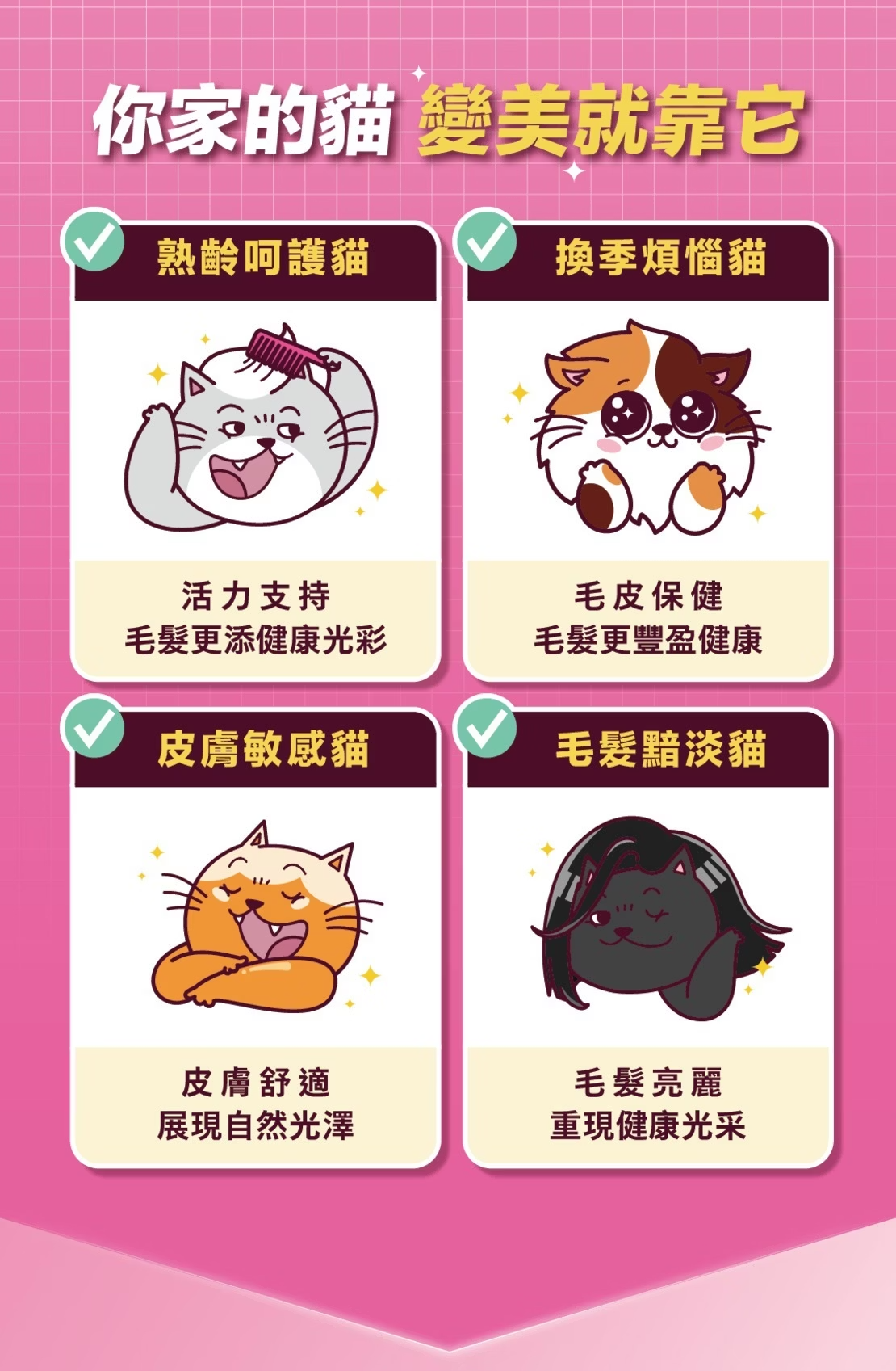 .營養均衡且添加超級食材,全齡貓都適用,幼貓/老貓也適合唷!