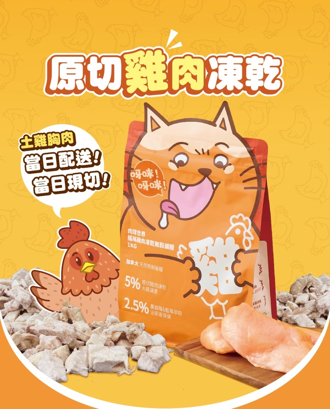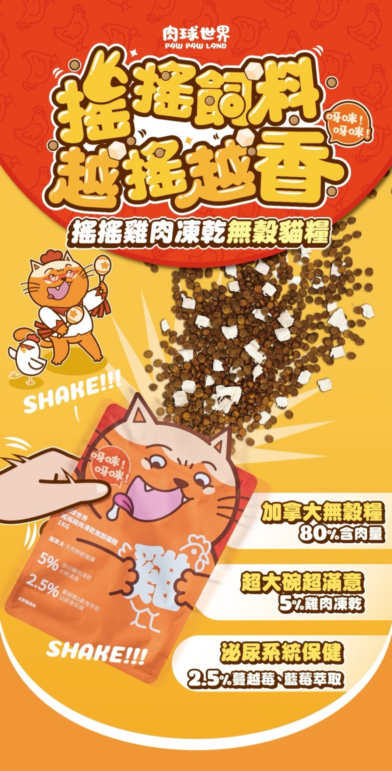 肉球世界|搖搖雞肉凍乾無穀貓糧 全齡貓 1kg/2.5kg