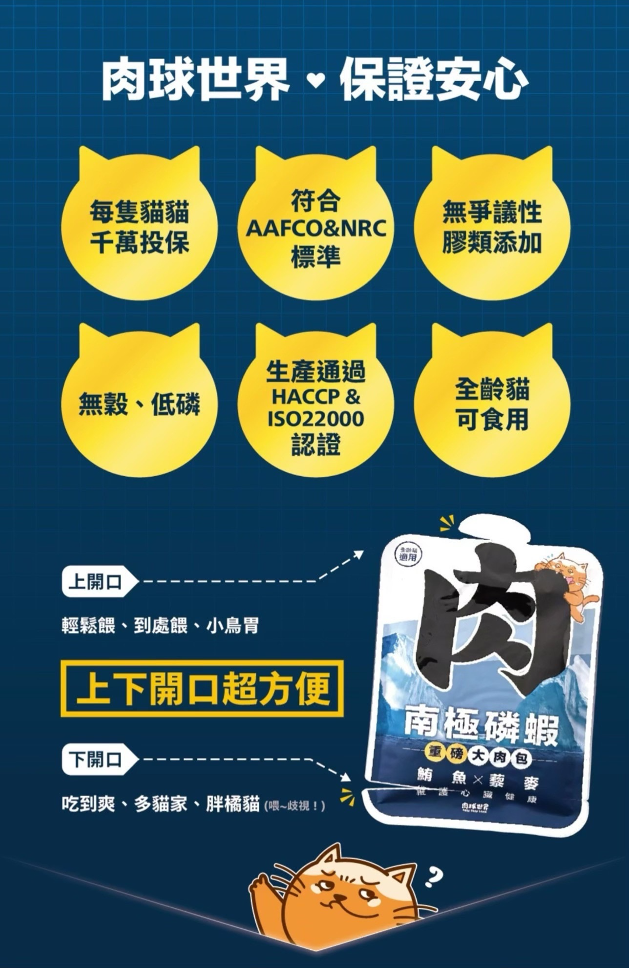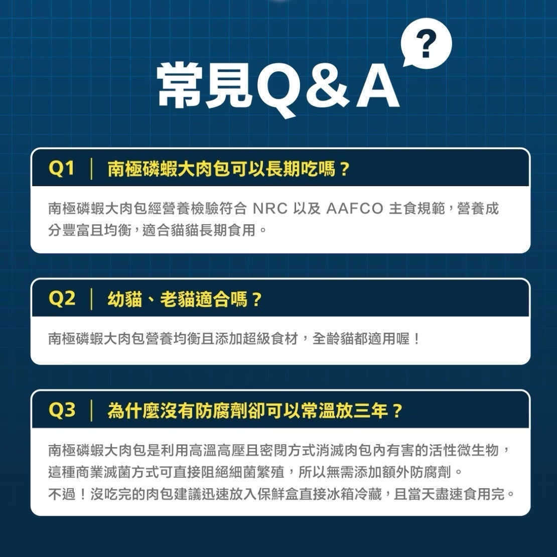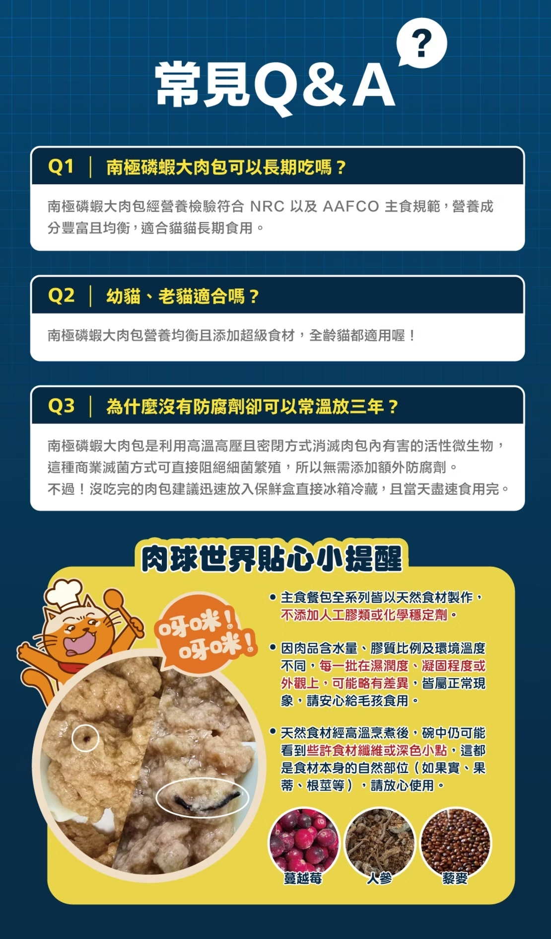 .南極磷蝦大肉包經營養檢驗符合NRC以及AAFCO主食規範,營養成分豐富且均衡,適合貓貓長期食用