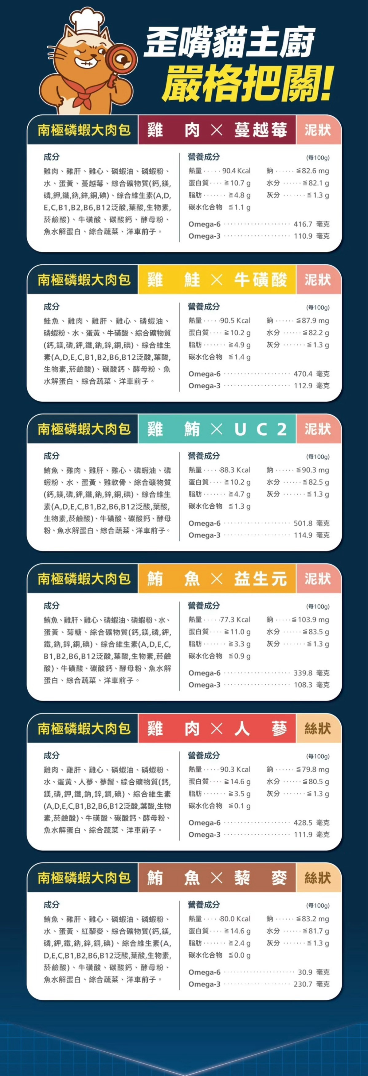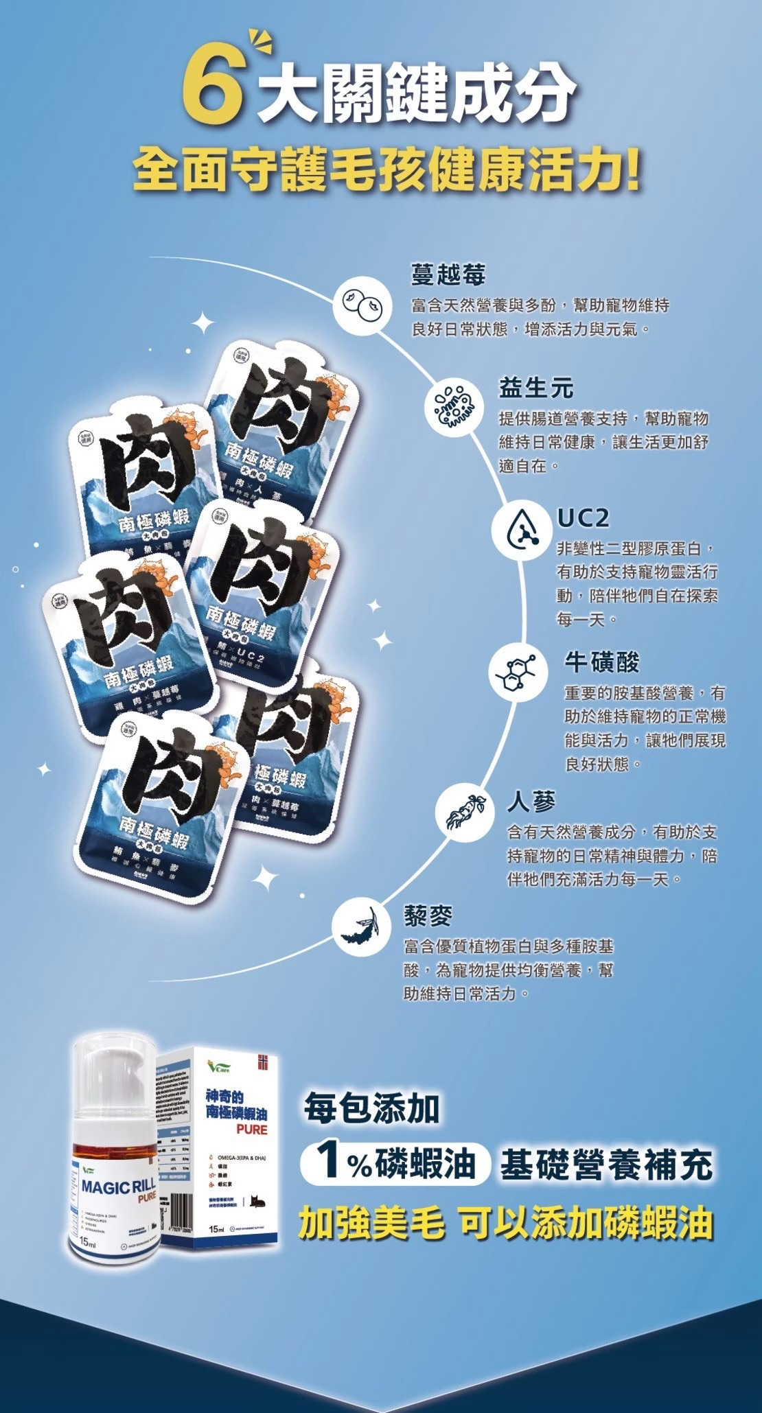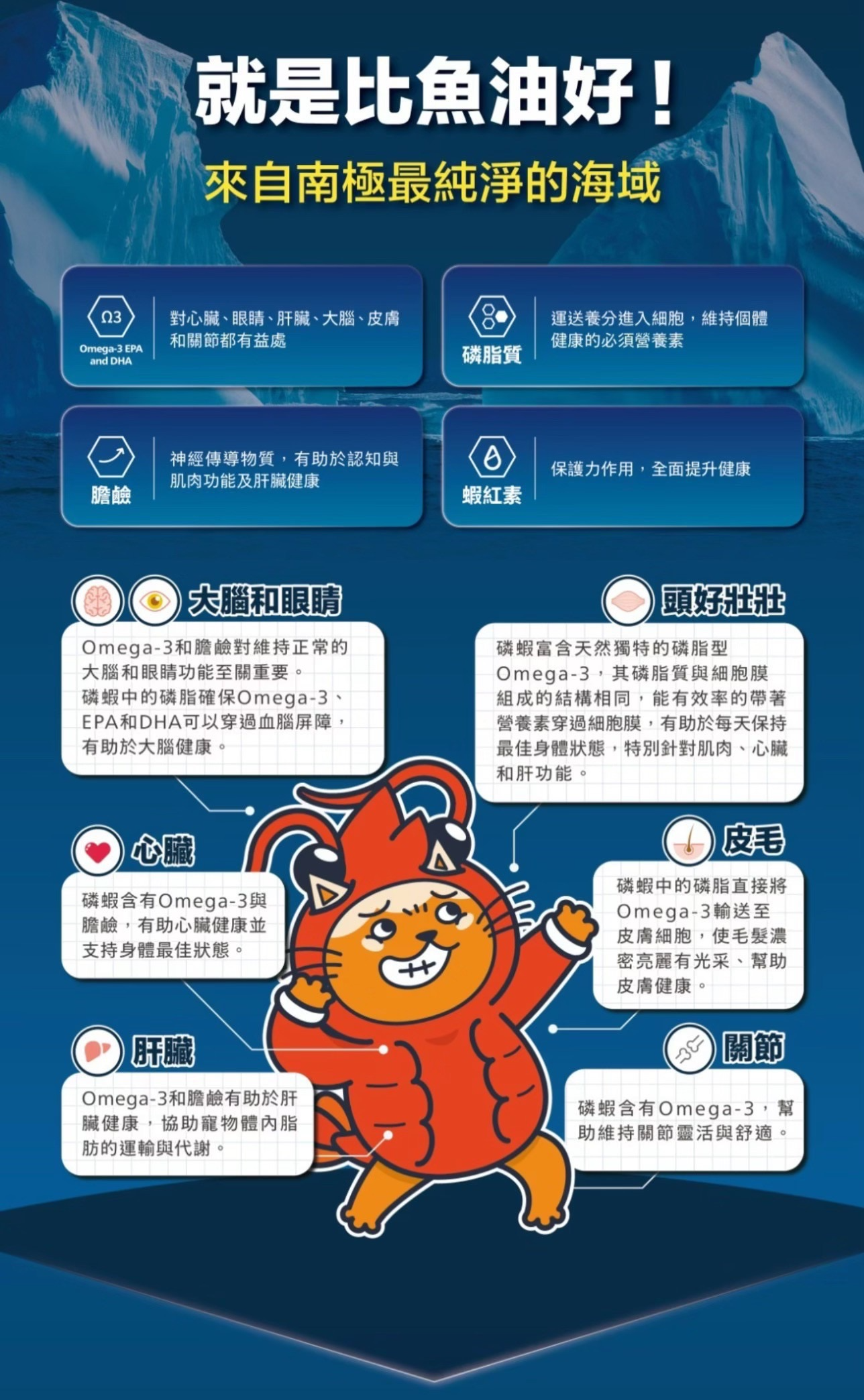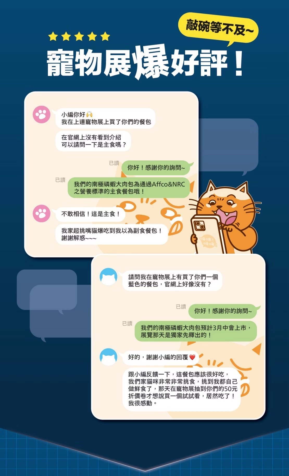 .南極磷蝦大肉包經營養檢驗符合NRC以及AAFCO主食規範,營養成分豐富且均衡,適合貓貓長期食用