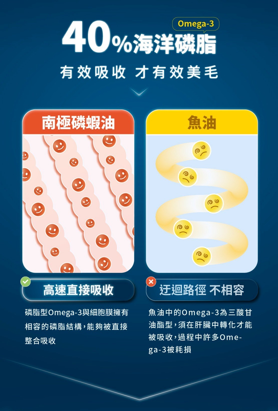 • (其磷脂型Omega 3與細胞膜,擁有相容的磷脂結構,能夠被直接整合全面吸收)