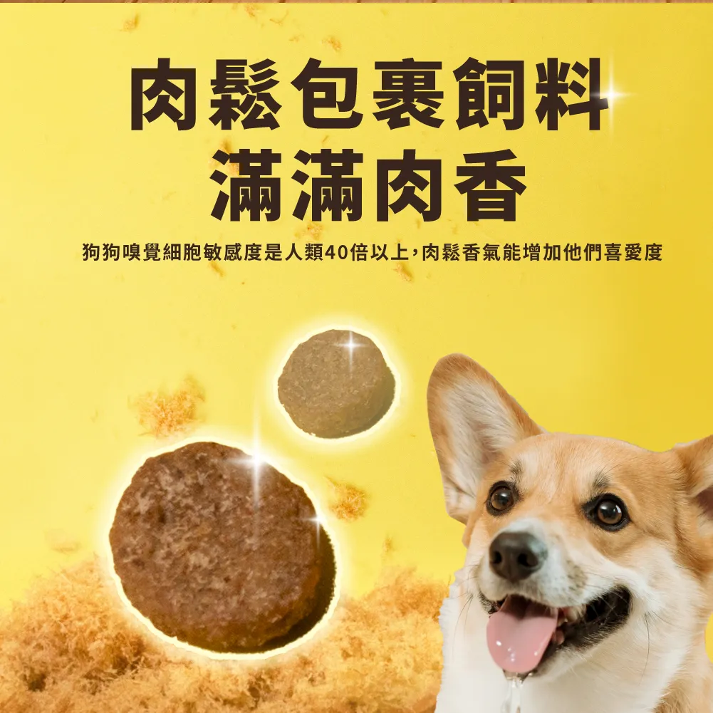 | 粒粒有肉,台灣豚肉鬆均勻包裹每顆飼料