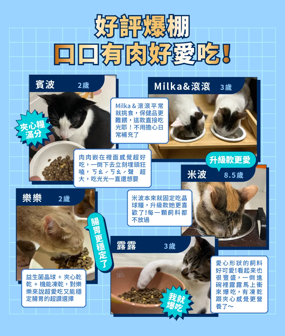 .飼料升級為愛心夾心飼料 →不再怕只挑凍乾吃