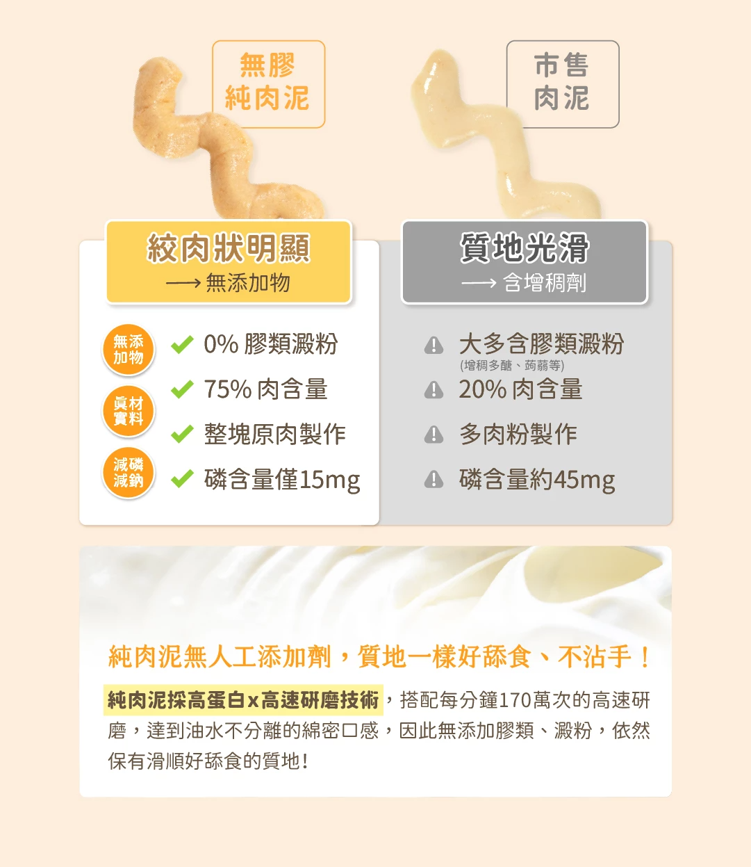 歷經長達兩年多的開發,透過「選用新鮮整塊原肉+鮮高湯、天然水解&高速研磨等技術」