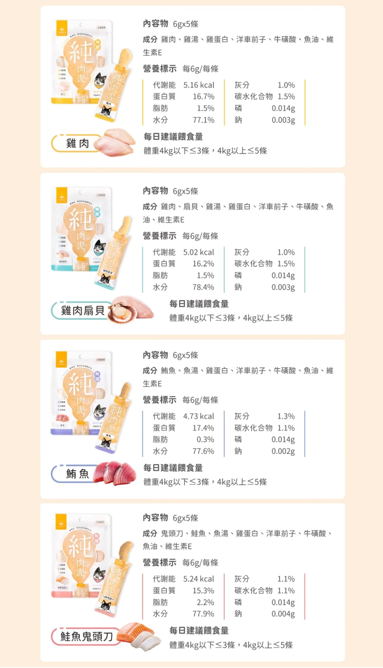 不過,提醒毛拔麻,雖然純肉泥有添加多種營養素,但純肉泥為零食,不可取代每日主食,毛拔麻要避免過量餵食!