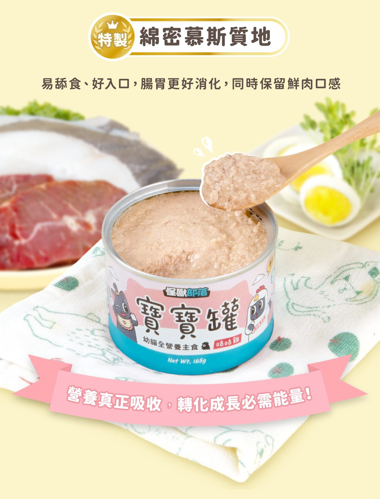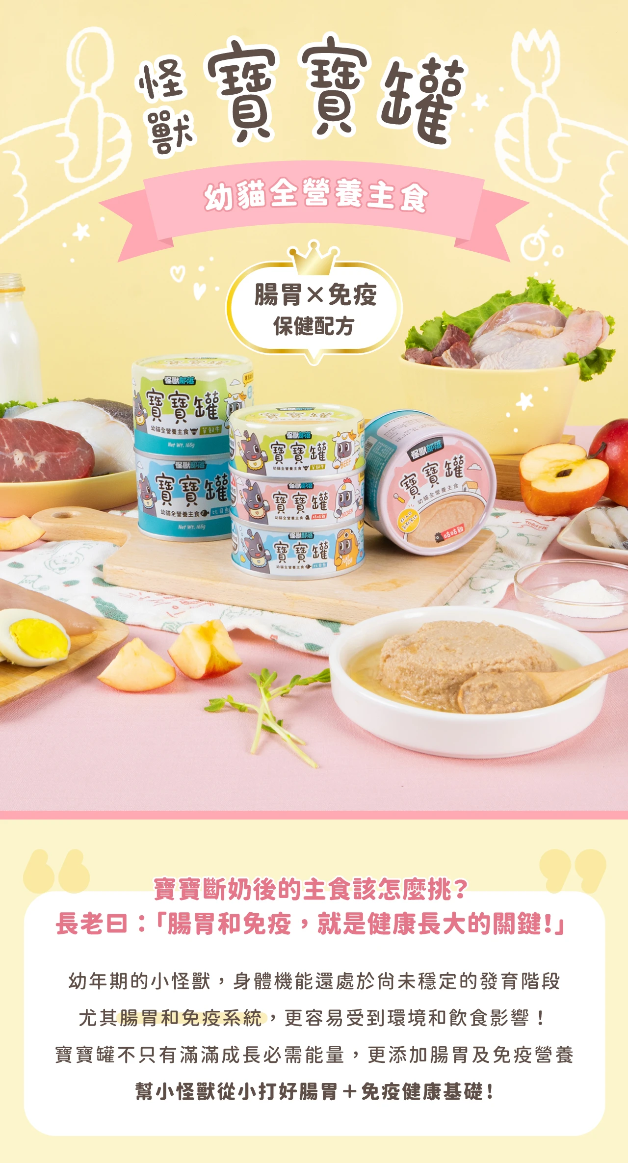 怪獸部落 | 幼貓主食罐,以貼近母乳營養需求為核心,提供幼貓成長所需的 高動物性蛋白、均衡必需營養素